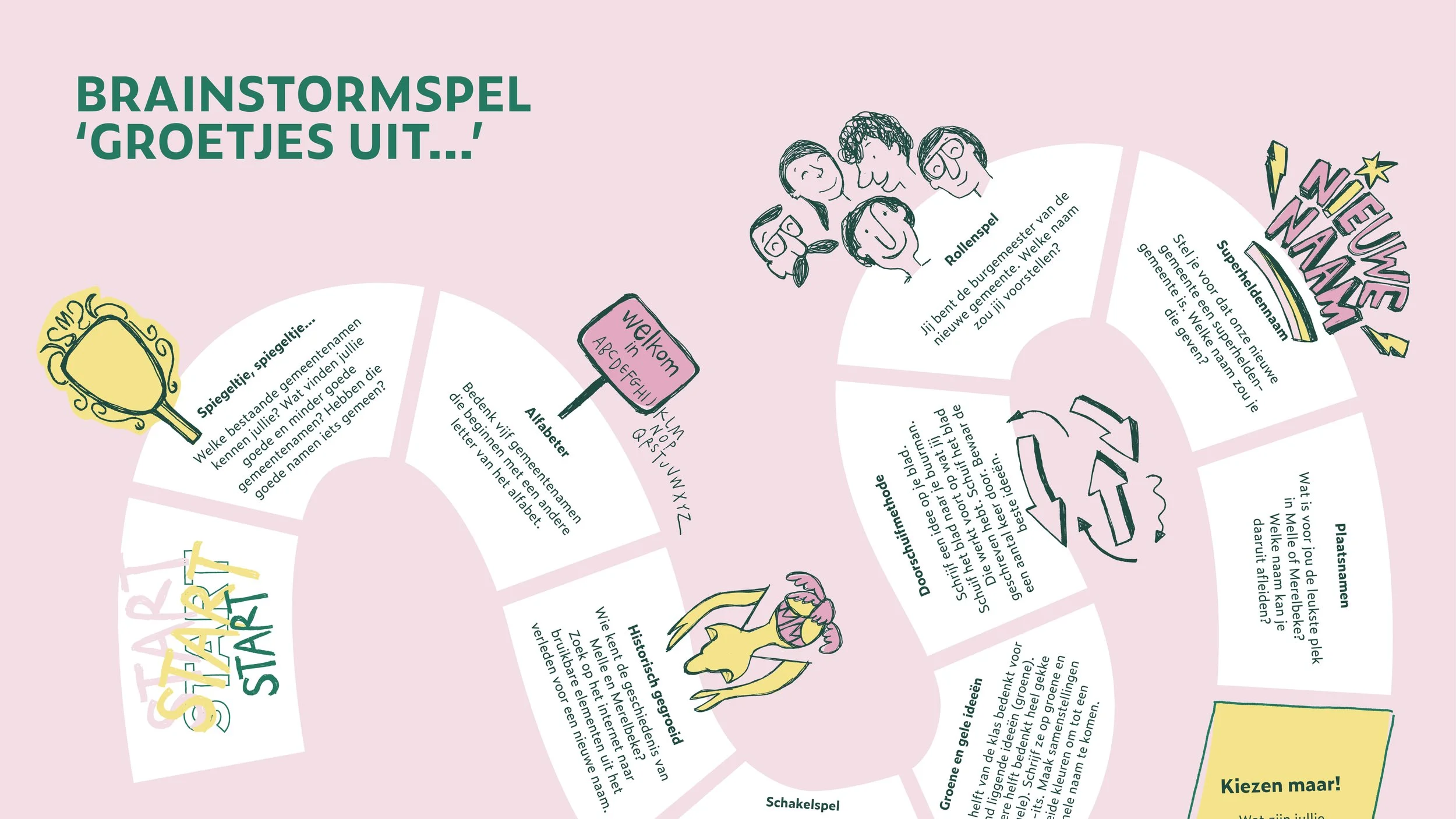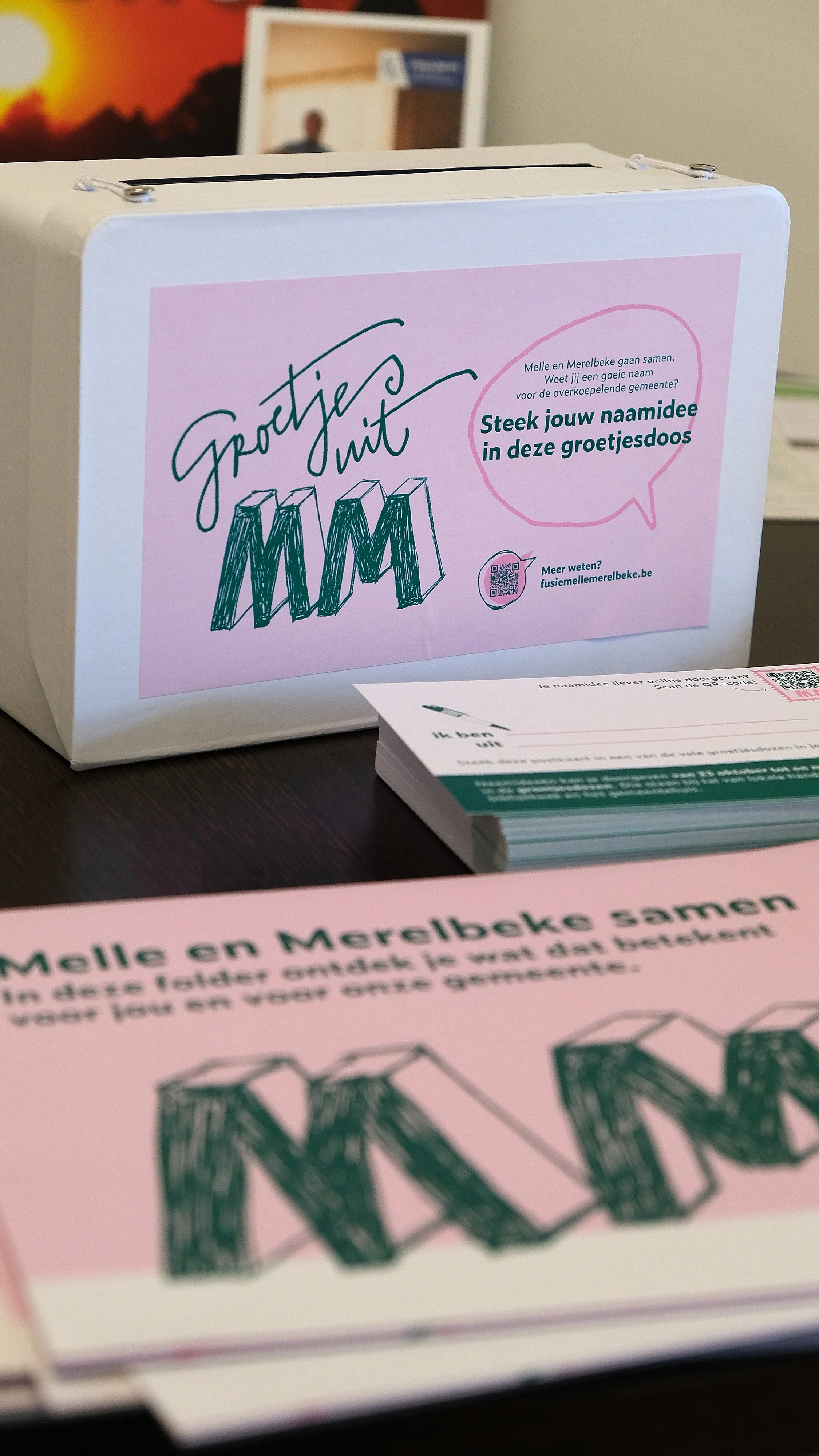 Maar liefst 2.140 naamvoorstellen. De folder krijgt een belangrijke focus: de zoektocht naar een nieuwe naam. De gemeentebesturen van Melle en Merelbeke willen hun inwoners daar graag bij betrekken. Iedereen mag voorstellen indienen. Dat kan via de website, maar ook via postkaarten die aan de folder hangen. Die kunnen de inwoners bij lokale handelaars en gemeentediensten in de groetjesdozen steken. De oproep werkt. Online worden er 848 naamideeën doorgegeven. De groetjesdozen smulden van 1292 leuke voorstellen.